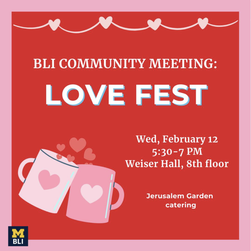 Join the Barger Leadership Institute for LoveFest! This social event will be a great way to meet fellow University of Michigan undergrads in a relaxing manner during the stress of midterms. Join us to practice love and gratitude towards those who are most special in our lives.