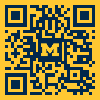 Graphic with a yellow and navy design that reads “New Student Programs – Maize Craze Carnival.” The background shows four smiling students taking a selfie outdoors near the Cube sculpture on the University of Michigan campus, with one student playfully leaning on the Cube.