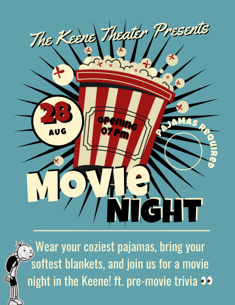 Thursday, August 28th. The movie will begin at 7pm, in the Keene Theater inside East Quad.