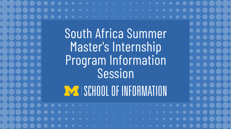 This information session will cover details on the South Africa summer program being organized by UMSI professors David Wallace and Anthea Josias. Program information, project opportunities, and more will be discussed.