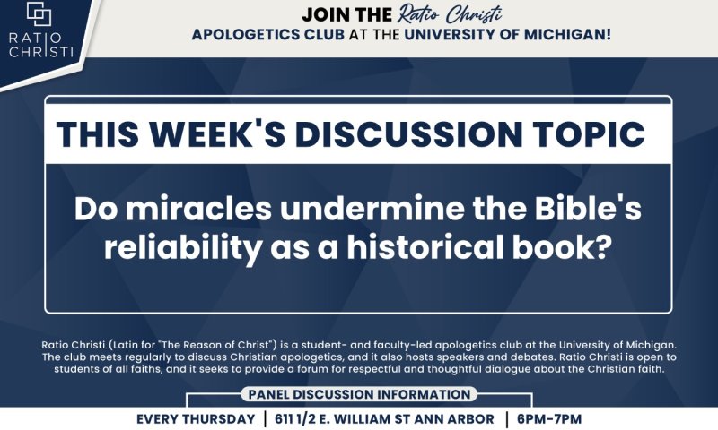 This week’s discussion question is: “Do miracles undermine the Bible's reliability as a historical book?”