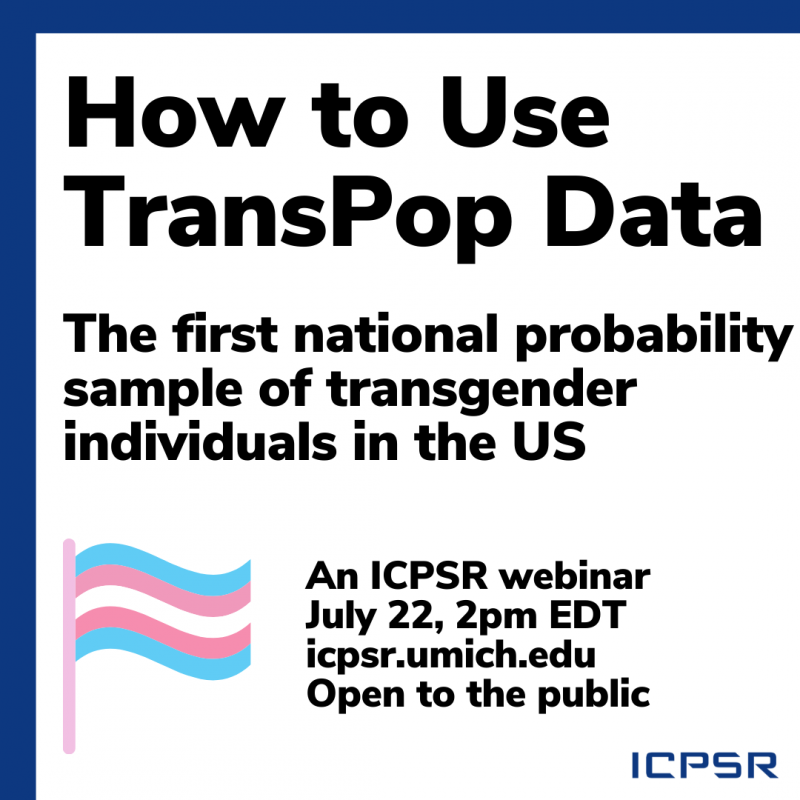 Join us for a virtual presentation of TransPop, the first national probability sample of transgender individuals in the United States. During this presentation you'll learn how to use these data to reach your own groundbreaking results.