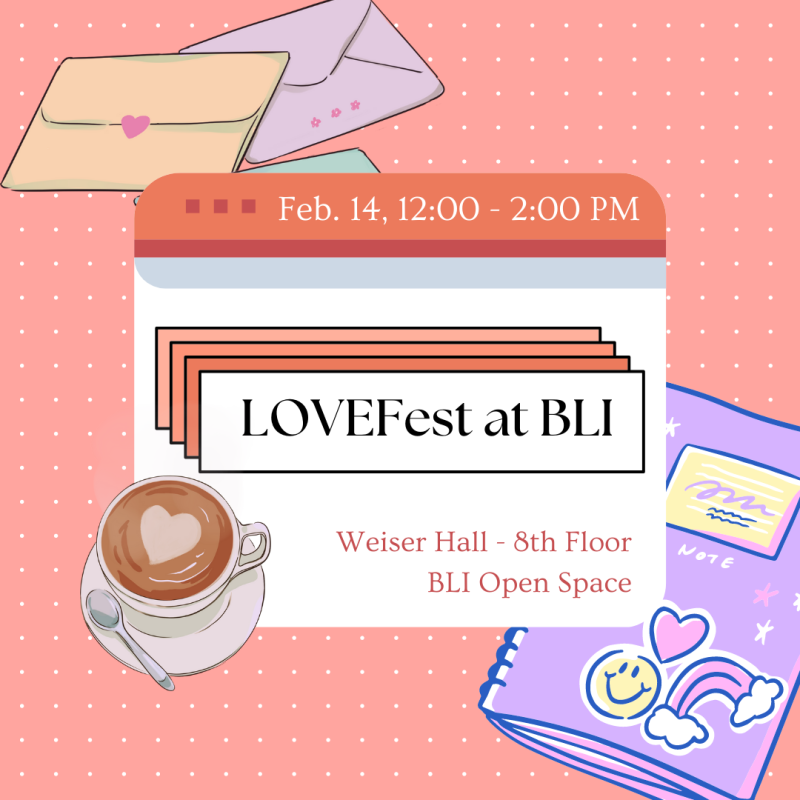 Happy Valentines Day! The Barger Leadership Institute is hosting Valentine’s Day LOVEFest for BLI members and undergraduate friends! Come join us at our social event for card-making crafts, love and appreciation activities, and BOBA TEA!